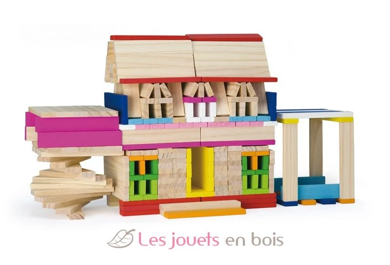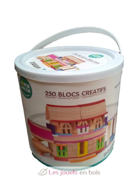 250 kreative Blöcke, ein Fass Holzbohlen für hochfarbige Konstruktionen der Marke Sapin Malin.