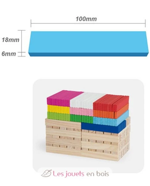 Dieses Set mit 250 Brettern besteht aus 150 Stück Naturholz und 100 Stück farbigem Holz in 10 verschiedenen Farben.