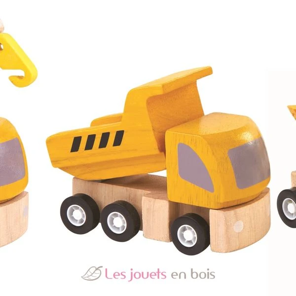 Baufahrzeuge, hölzerne Fahrzeuge der Marke Plan Toys. Ref. PT6047.