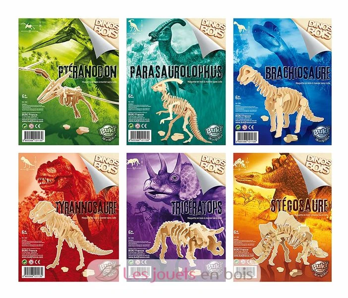 Hölzerne Dinosaurier-Modelle der Marke Buki. Referenz D6B.