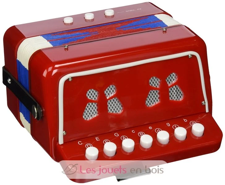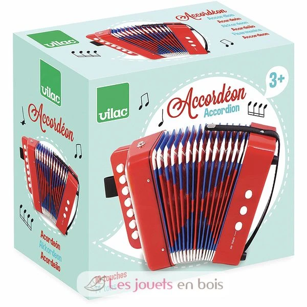 Echt Akkordeon Balg (10-Tasten-Tastatur und 14 Tonnen) eine bunte Musikinstrument. Macht Geräusche mit dem Akkordeon ist nur ein Paradies für kleine und dann, wenn sie sich das Recht vor Lärm zu machen … Man weiß nie, Ihr Kind wird ein großer Musiker sein … Das Akkordeon ist ein spielzeug von VILAC Marke. Ref. 8300.