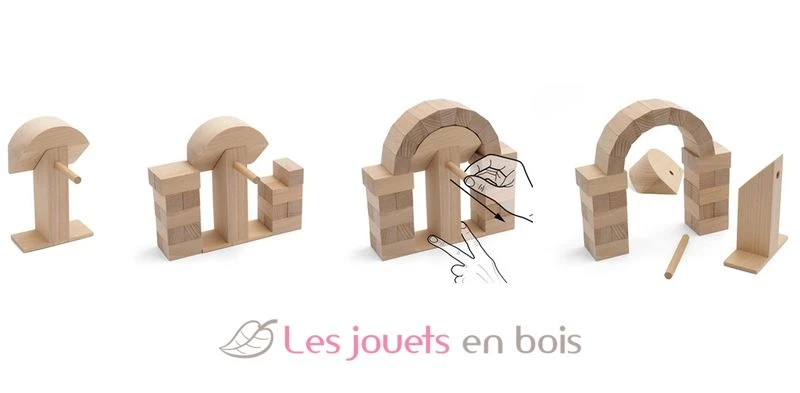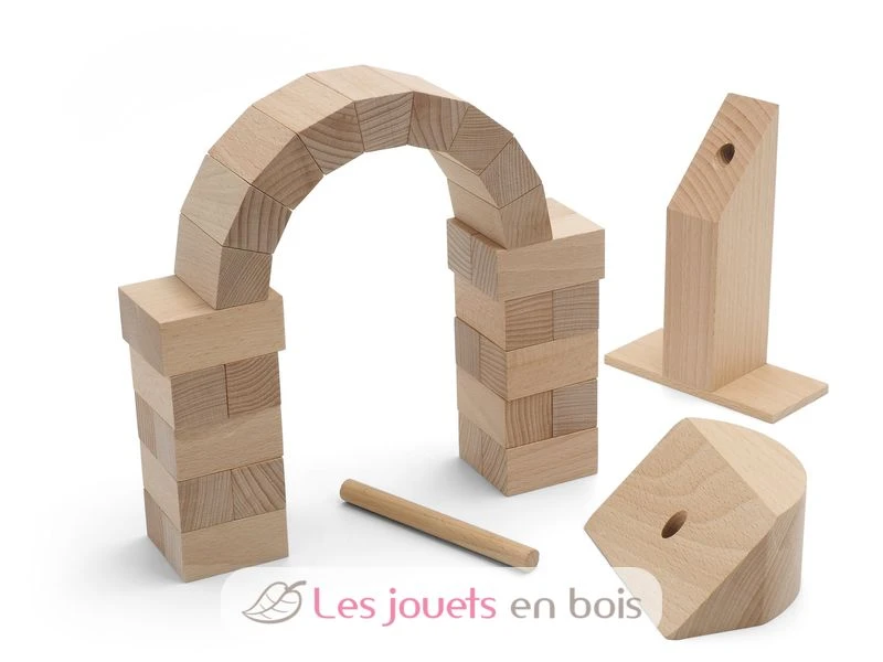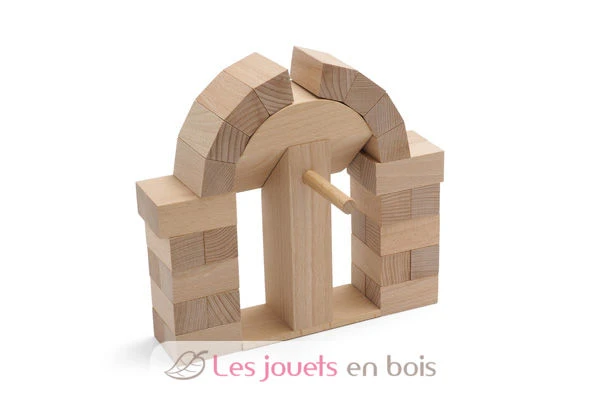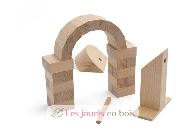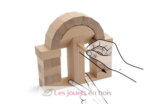Zeigen Sie Ihre Fähigkeit, Halbkreisbögen wie Roman ohne Zement oder Klebstoff zu bauen. In dieser Box finden Sie die 32 Stücke massiven Buchenholzes, die zum Bau eines Bogens benötigt werden (19 x 19,5 x 4,6 cm).