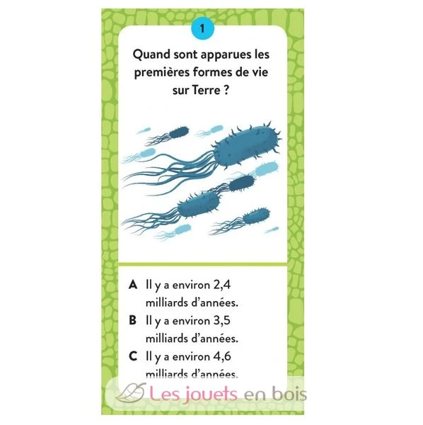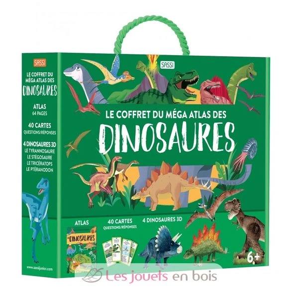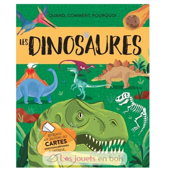Lesen Sie das Buch (französische Version), beantworten Sie die Fragen auf den 40 Q&A-Karten, bauen Sie die vier 3D-Modelle von Dinosauriern.