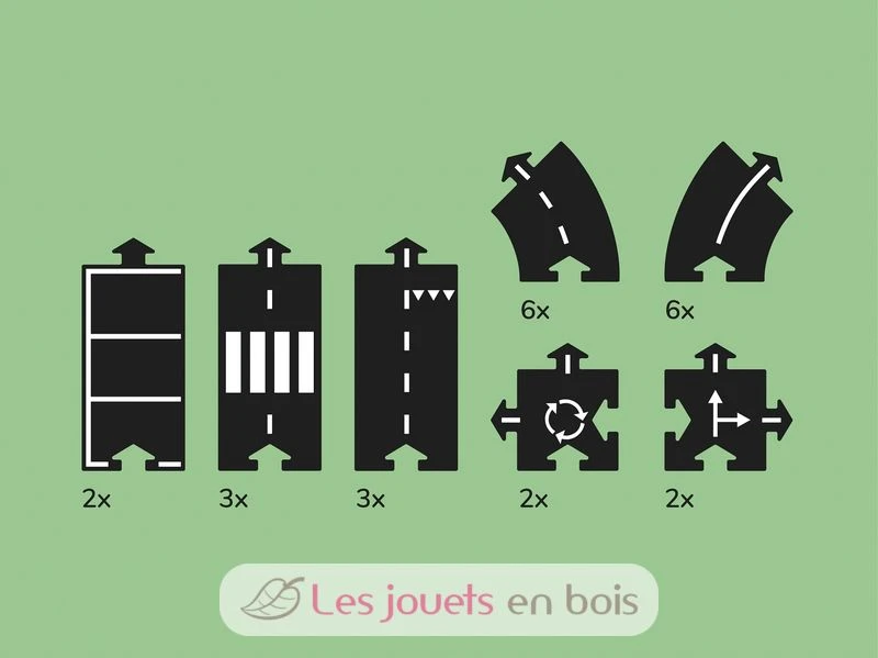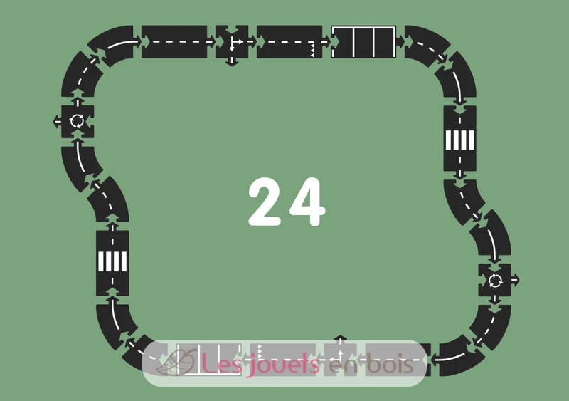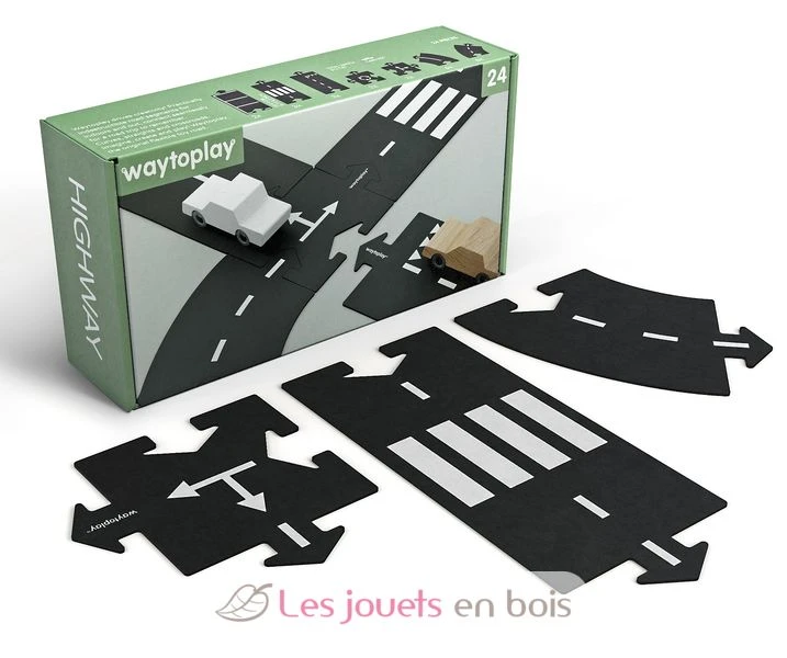 Das 24-teilige Set eignet sich perfekt als Einstieg in die Welt von waytoplay. Es lässt sich jederzeit ganz einfach durch den Zukauf zusätzlicher Sets erweitern. Beinhaltet 12 Kurven, 8 Geraden, 2 Kreuzungen und 2 Kreisverkehre. Sehen Sie Ihren Kindern dabei zu, wie sie für ihre Lieblingsspielzeuge und Autos ihre ganz eigenen Rundkurse und Straßenverläufe bauen !
