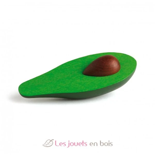 Halbe Avocado mit sichtbarem Kern aus Holz zum Spielen.