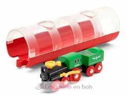 Wer sagt, dass es keinen Spaß macht, auf den Zug zu warten? Dieser wunderbare Bahnhof weist die äußerst beliebte Record & Play-Funktion von BRIO auf. Drücke auf einen Knopf und sprich los – und dann kannst du abhören, was du gesagt hast, indem du auf den anderen Knopf drückst. „Test, Test! Wer möchte den nächsten Zug ansagen?“.
