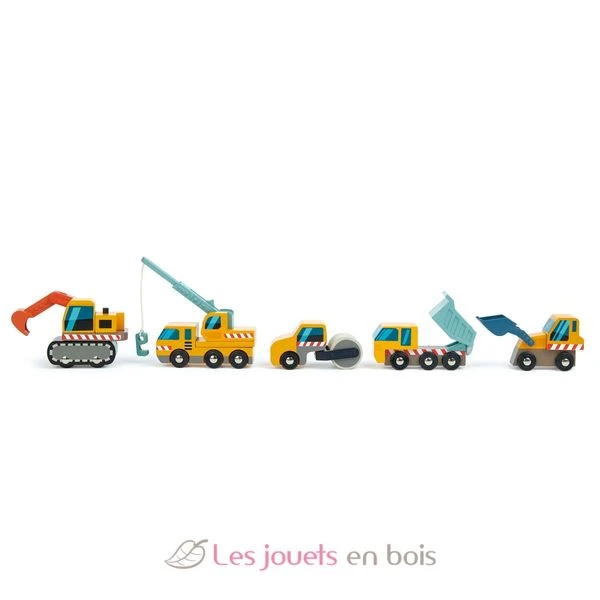 Baufahrzeuge, hölzerne Fahrzeuge der Marke Tender Leaf Toys. Ref. TL8355.