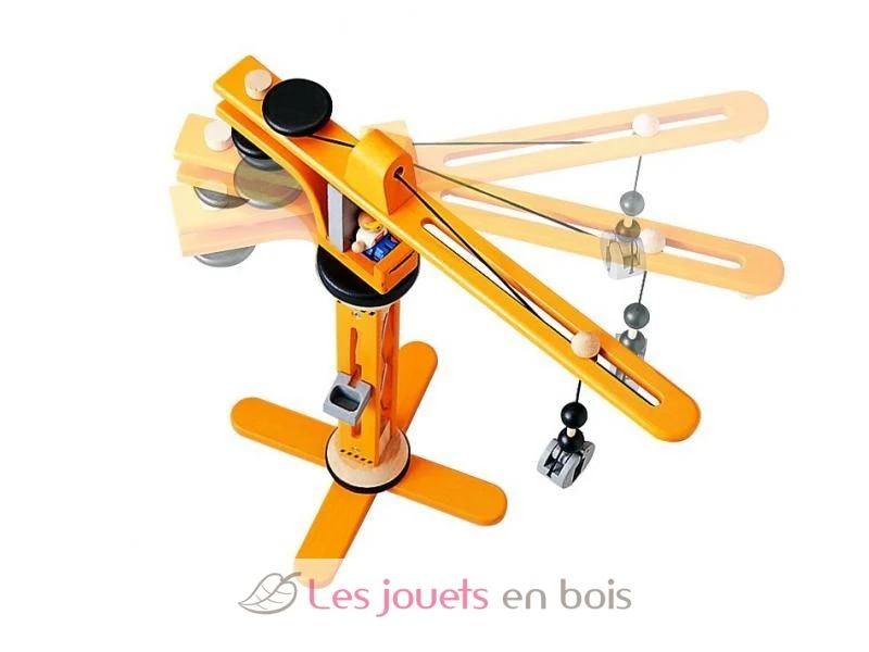 Wunderbar ! – Dieser Kran aus Holz funktioniert “ wie ein Echter“. Der Ausleger ist um 360 Grad drehbar. Der Greifer bewegt nach oben und unten, vorwärts und rückwärts. Dieses Baustellenset besteht aus : einem großen Kran, Baustellenschilder, einer Betonmischmaschine, einem Schubkarren, einem Eimer und zwei Figuren. Hochwertiges Holzspielzeug der Marke Plantoys.