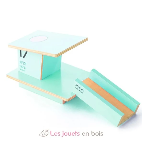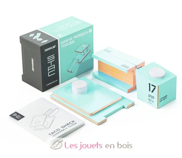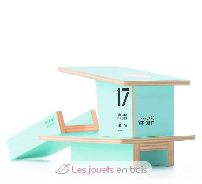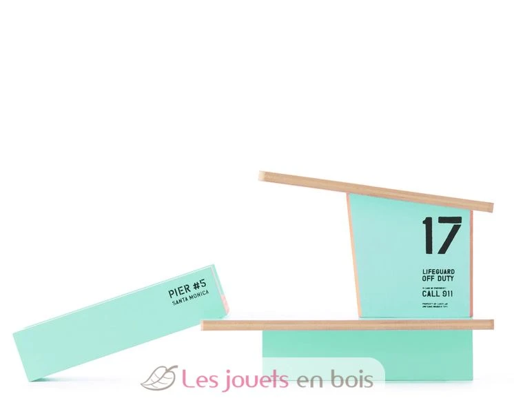 Beach Tower Teal Santa Monica, ein Set aus 5 Teilen aus massivem Buchenholz zum Zusammenbauen. Abmessungen: 22 x 10 x 9 cm.