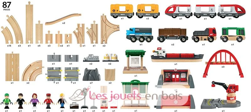 Bauen, erkunden und spielen. Dieses Set bietet das Beste aus der Welt der BRIO Holzschienenbahn. Hier kannst du an der Tankstation tanken, durch den Tunnel fahren und verschiedenste Güter verladen. Über 87 Teile zum Spielen, einschließlich batteriebetriebener Lokomotive. Und alles lässt sich ganz praktisch in dieser Box verstauen.