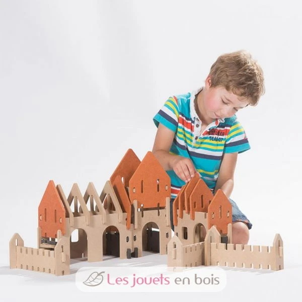 Teile Schlösser „Ardennen Toys“ ineinander passen und ermöglichen eine Vielzahl von Möglichkeiten. Türme, Mauern, Brücken, … Endless Baumöglichkeiten! Die Ställe umfasst 42 Stücke, die durch ineinandergreif füreinander und benötigen keine Werkzeuge oder Teile von Verbindungselementen. Ein Stück Kuchen! Dieser Baukasten ist für Kinder mit Partikeln PEFC Holz aus Bäumen gewonnen, die in den Ardennen geschoben haben entworfen.