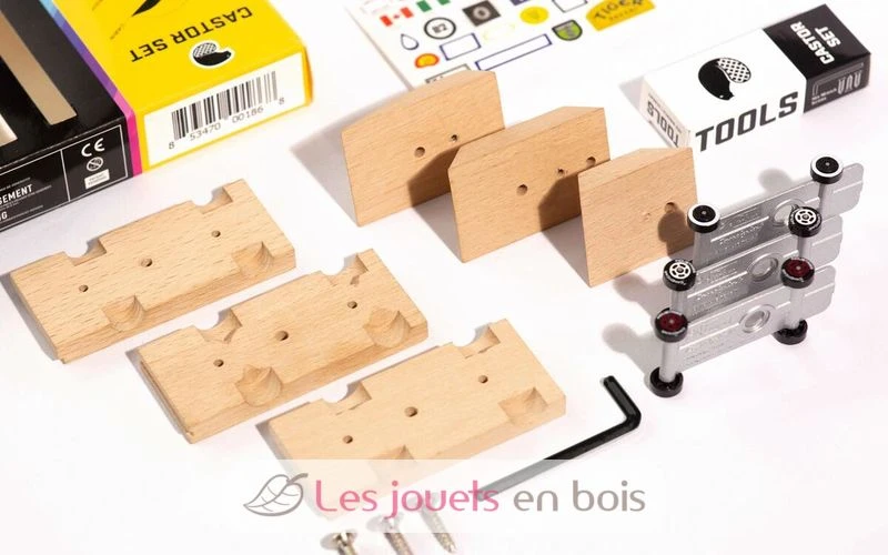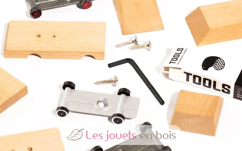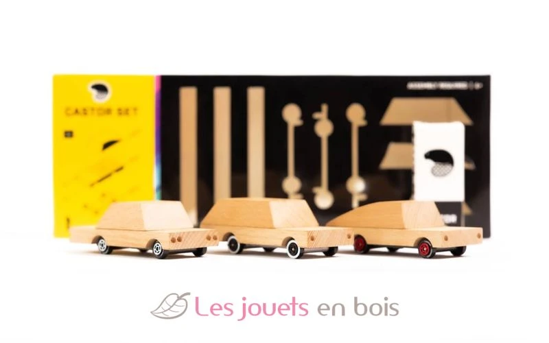 Das Castor Set ist eine Do-it-yourself-Box, die von Candylab angeboten wird. Es besteht aus 3 Candycars zum selber zusammenbauen (ab 6 Jahren). Dieses Kit enthält die Schrauben, das Werkzeug, die Metallrahmen, die Holzkarosserie (massive Buche) und sogar die Aufkleber, um die Autos individuell zu gestalten.