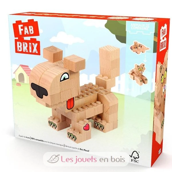 Entdecken Sie den FabBrix: Massivholzbauklötze, biologisch abbaubar und aus FSC-zertifizierten Wäldern, 100% kompatibel mit konventionellen Bauklötzen. Fügen Sie Aufkleber hinzu, die in jeder Schachtel vorhanden sind, um den Kreationen Leben einzuhauchen!