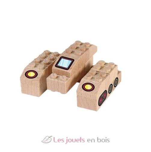 Entdecken Sie den FabBrix: Massivholzbauklötze, biologisch abbaubar und aus FSC-zertifizierten Wäldern, 100% kompatibel mit konventionellen Bauklötzen. Fügen Sie Aufkleber hinzu, die in jeder Schachtel vorhanden sind, um den Kreationen Leben einzuhauchen!