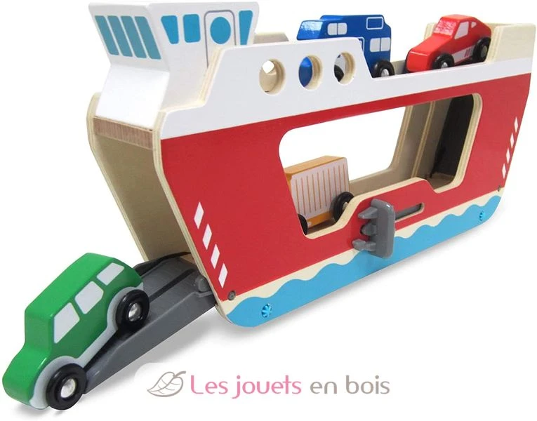 Fähre und 4 Holzfahrzeuge, ein Holzspielzeug von Melissa and Doug.