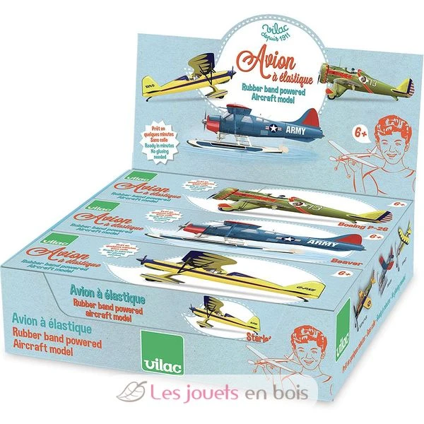 Kleines Flugzeug aus Holz, Kunststoff und Styropor zum selber bauen. In wenigen Minuten fertig, ohne Kleber. Die Kraft des Gummibandes dreht den Propeller.