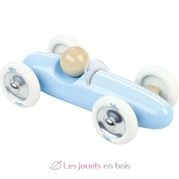 Schönes lackiertes Massivholzauto. Grand Prix vintage modell blau Farbe von 18 cm lang.