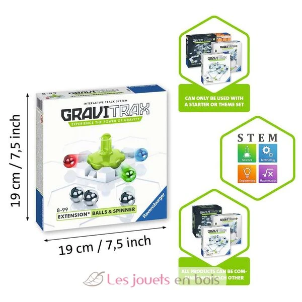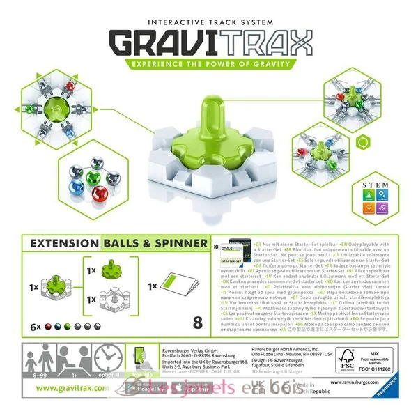 Steigern Sie Ihre GraviTrax-Schaltungen mit diesen 6 zusätzlichen Murmeln und ihrem Startblock in Form eines Kreisels! Dieser Block und diese Nachfüllung von 6 Bällen werden mit mindestens einem Starter-Set gespielt und können dann mit allen GraviTrax-Produkten kombiniert werden.