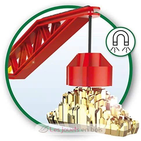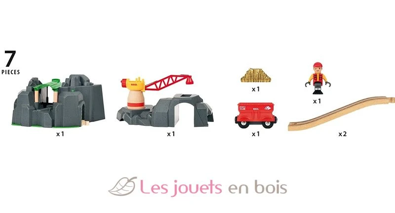 In jeder Ecke der großen Goldmine mit Sound-Tunnel gibt es Neues zu entdecken. Den Kran und die Oberseite des Berges kannst du abheben und über die Schienen setzen. Zusätzlich zur Bahnstrecke auf mehreren Ebenen und dem majestätischen Kran auf dem Berg erklingen vier verschiedenen Sound-Effekte, wenn der Zug durch den Berg fährt. Eine Schatzkammer voller spielerische Funktionen und Designideen – und Gold kannst du auch finden!