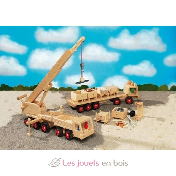 Große LKW-Kran Holz mit 4 Rädern. Rotierende Kran mit einem Haken, ein Magnet Stabilisator Arme … Ihr Kind dreht das Rad und Haken oben oder unten. Eine schöne Massivholz Spielzeug deutscher Fertigung ist bewusst ohne Nägel, Schrauben oder Klammern hergestellt. Der farblose Lack bewahrt die Struktur und die Wärme des Holzes. Ein Spielzeug aus Buchenholz, langlebig und qualitativ hochwertiges Home Fagus gemacht. Ref: 1032