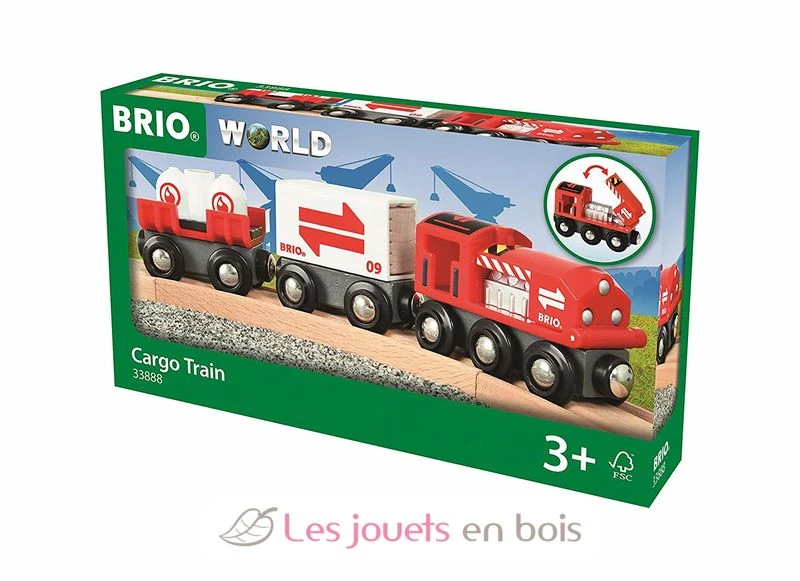Unser neuer roter großer Güterzug ist da – der Nachfolger von Generationen an BRIO Zügen, mit denen Generationen von Kindern gespielt haben. Dieser neue Güterzug besteht aus einer Lok mit Klappe und zwei Waggons, einem mit einer Holzladung und einem mit einer Tankladung. Der große BRIO Güterzug ist perfekt für alle Szenarien der BRIO World geeignet.