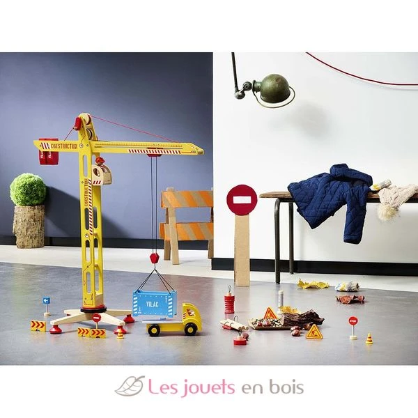 Große Holzkran den Vorarbeiter zu spielen! Kann mit dem LKW Container-LKW und Yards Zubehör zugeordnet werden. Großkran der Marke Vilac, ref 2343.