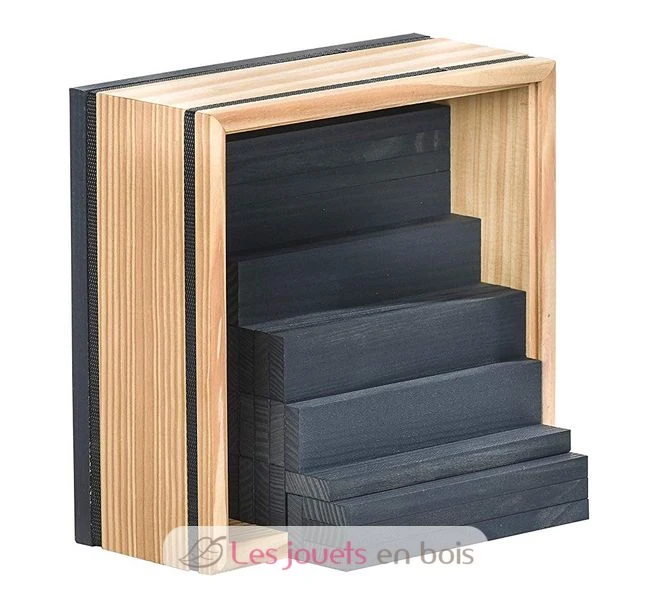 Kapla – Die berühmte 40 dunkelblauen Plättchen aus naturbelassenem erstklassigem Pinienholz von den Landes (von verwalteten Wäldern stammt) sind 12 cm lang. Kapla 40er Quadrat erlaubt dem Kind, entweder, diesen Baukasten zu entdecken, oder den Barrel 100 naturbelassene Holzplättchen zu ergänzen. Die Plättchen sind in einer Holzkiste mit transparentem Fenster geliefert, sehr praktisch für das Aufräumen. Altersempfehlung : 3 Jahre.