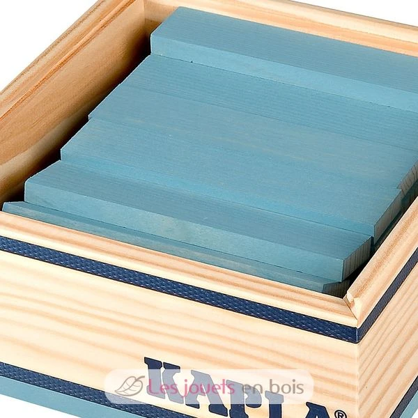 Kapla – Die berühmte 40 hellblauen Plättchen aus naturbelassenem erstklassigem Pinienholz von den Landes (von verwalteten Wäldern stammt) sind 12 cm lang. Kapla 40er Quadrat erlaubt dem Kind, entweder, diesen Baukasten zu entdecken, oder den Barrel 100 naturbelassene Holzplättchen zu ergänzen. Die Plättchen sind in einer Holzkiste mit transparentem Fenster geliefert, sehr praktisch für das Aufräumen. Altersempfehlung : 3 Jahre.