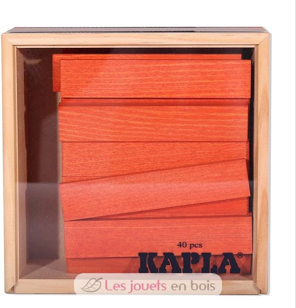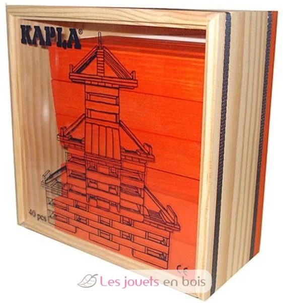 Kapla – Die berühmte 40 Plättchen in der Farbe orange aus naturbelassenem erstklassigem Pinienholz von den Landes (von verwalteten Wäldern stammt) sind 12 cm lang. Kapla 40er Quadrat erlaubt dem Kind, entweder, diesen Baukasten zu entdecken, oder den Barrel 100 naturbelassene Holzplättchen zu ergänzen. Die Plättchen sind in einer Holzkiste mit transparentem Fenster geliefert, sehr praktisch für das Aufräumen. Altersempfehlung : 3 Jahre.