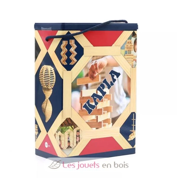 Ein Kapla Barrel : 200 naturbelassene Holzplättchen (Kiefernholz von die Landes/Frankreich) mit einem ausführlichen Anleitungsheft. KAPLA, das ist der Baukasten ! Der Kapla Barrel is ein Holzspielzeug von der Firma KAPLA.