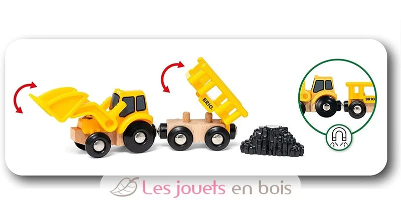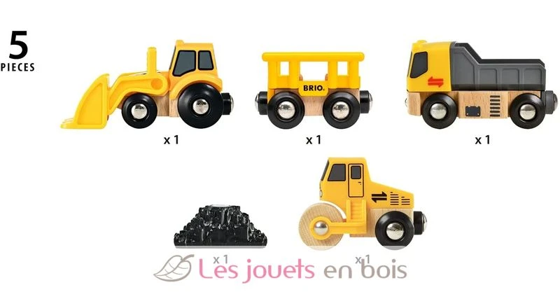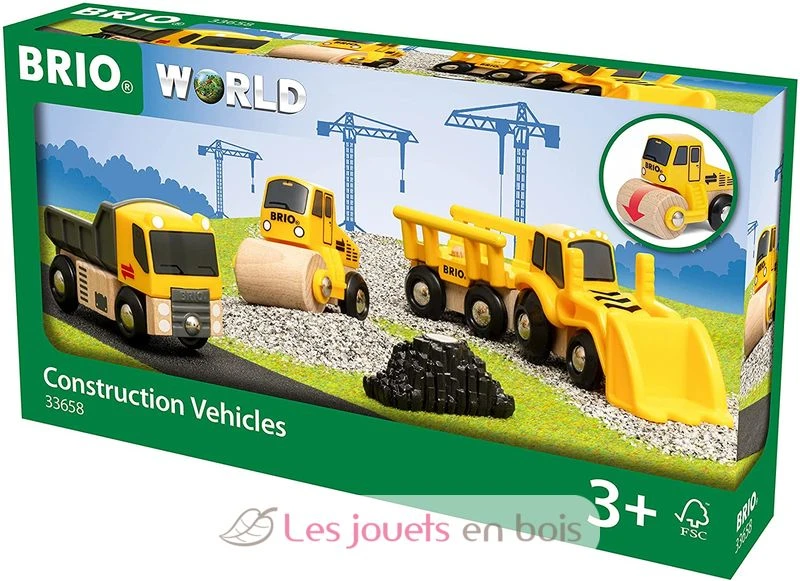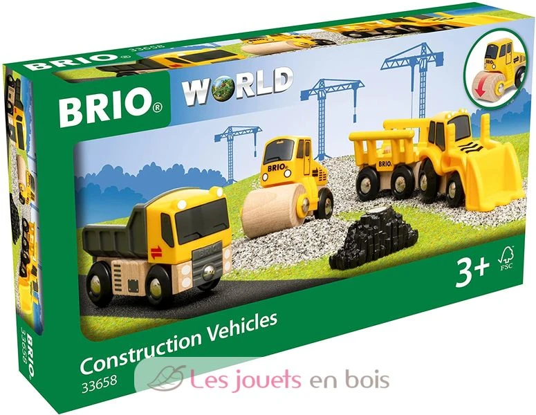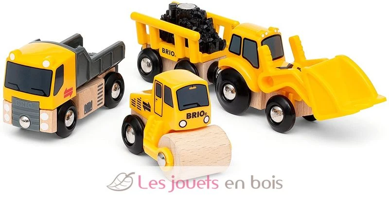 Set mit 3 Baumaschinen, anpassbar an alle Holzbahnstrecken der Marke BRIO Brio World. Ref: 33658