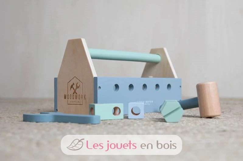 Mit diesem Holz Werkzeugkasten von Little Dutch kann Ihr Kind bei allen handwerklichen Aufgaben im Haus mithelfen! Der Werkzeugkasten besteht aus 20 Teilen in sanften Mint- und Blautönen. Der Kasten bietet viel Spielfreude für jeden kleinen Handwerker im Haus. Ihr Kind spielt und erlernt gleichzeitig eine gute Motorik.