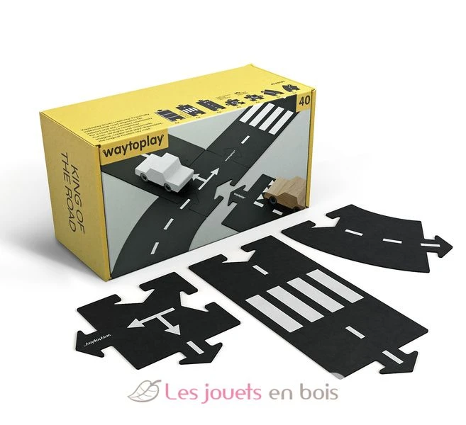 Das 40-teilige Set eignet sich perfekt als Einstieg in die Welt von waytoplay. Es lässt sich jederzeit ganz einfach durch den Zukauf zusätzlicher Sets erweitern. Beinhaltet 16 Kurven, 16 Geraden, 4 Kreuzungen und 4 Kreisverkehre. Sehen Sie Ihren Kindern dabei zu, wie sie für ihre Lieblingsspielzeuge und Autos ihre ganz eigenen Rundkurse und Straßenverläufe bauen !