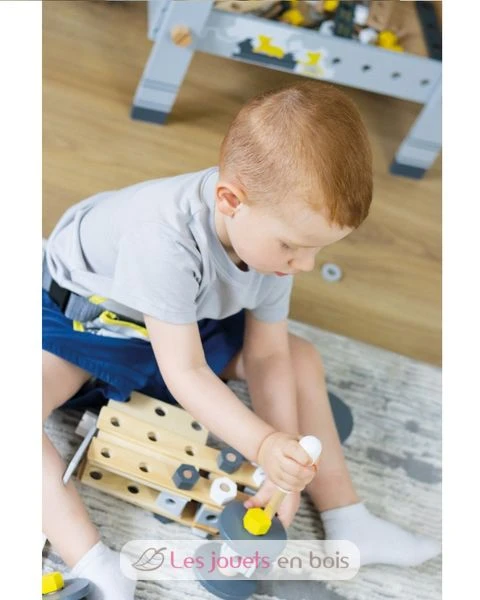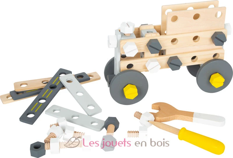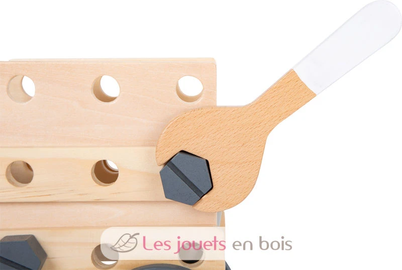 Das perfekte Kreativspielzeug für kleine Mechaniker! Mit Lochleisten, Gewindewürfeln, Schrauben, Holzscheiben und Muttern wird das dreidimensionale Bauen geübt und mit Schraubenschlüssel und Schraubendreher werden alle Bauteile fachgerecht montiert. Egal ob Traktor, Flugzeug oder Pony – beim Schrauben und Stecken sind der Kreativität keine Grenzen gesetzt. In der zugehörigen Box kann das gesamte Set sortiert und ordentlich verstaut werden.
