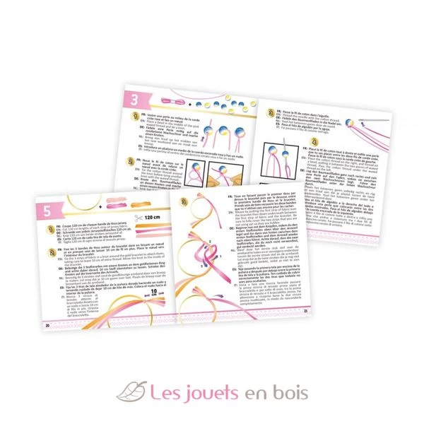 Dieses Set enthält: Neon-Perlen, Jerseystoffe, Baumwollgarne, Anhänger, Verschlüsse, Ringe und mehr.