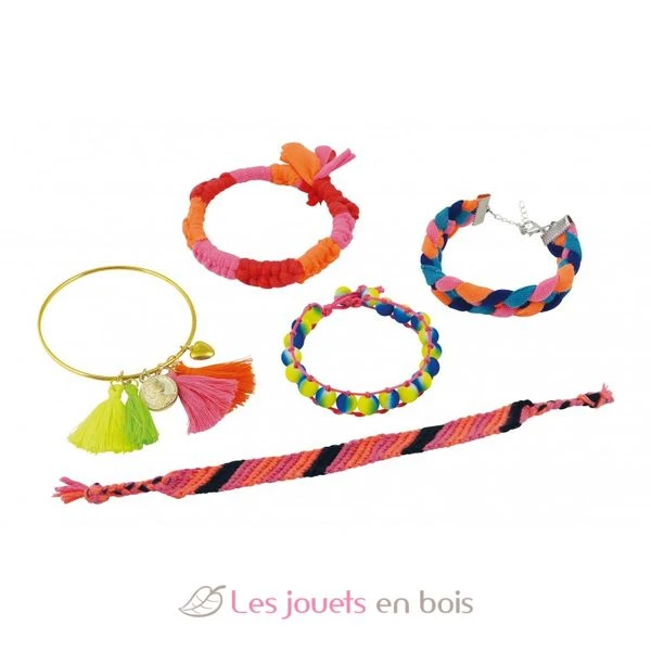 Entdecken Sie das Kreativ-Set Neon-Armbänder von Buki, eine kreative Aktivität für Kinder ab 8 Jahren.