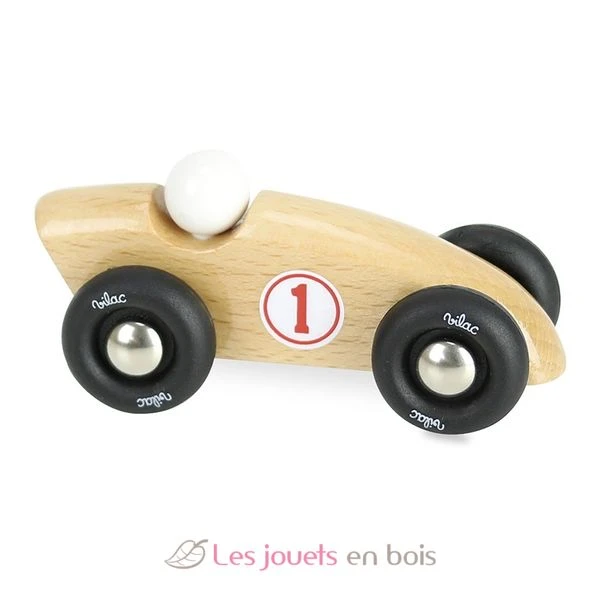 mini natürliches Holz Wettbewerb, eine hölzerne Sportwagen in Frankreich von Vilac gemacht. Artikelnummer 2280S.