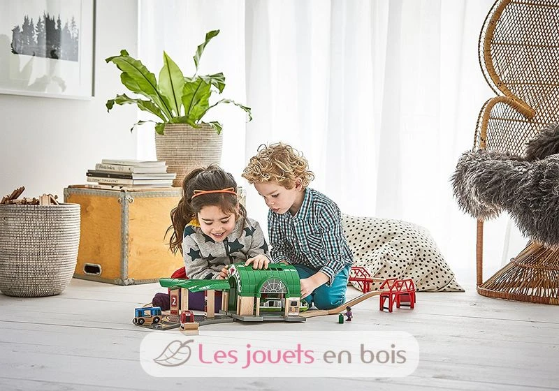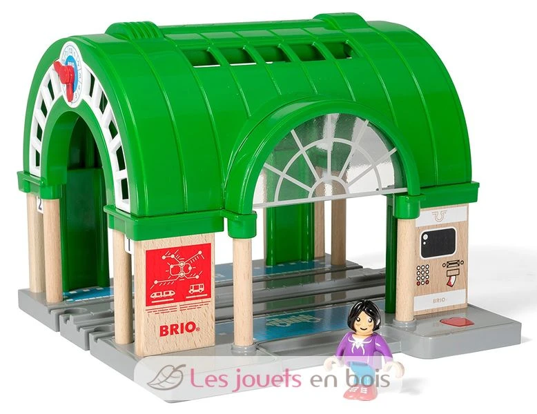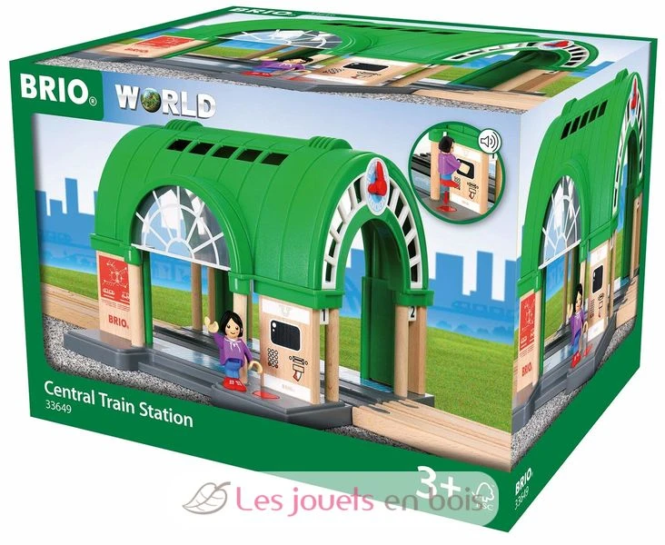 Bitte alle einsteigen! Der Hauptbahnhof hat Doppelgleise und der Fahrkartenautomat macht viele verschiedene Geräusche. Er ist der perfekte Mittelpunkt in deinen Eisenbahnnetz. Hier beginnt für deine Passagiere das Abenteuer und nur du weißt, was passieren wird. Vergiss nicht, die Fahrkarten zu kaufen!