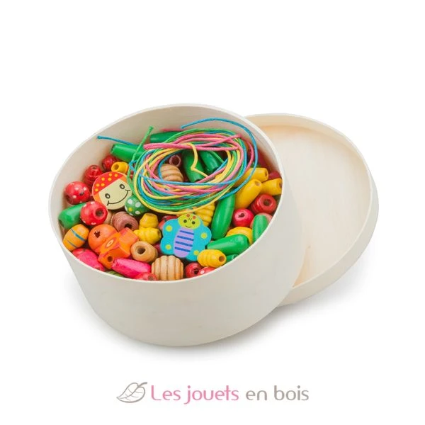 Holzperlen eignen sich für so viele Bastelideen! Nicht nur zum Schmuck basteln, wie kunterbunte Kinderketten oder sportliche Armbänder im Naturlook, sondern auch zum Verzieren von Dekoartikeln. Den Ideen ihrer Kinder sind keine Grenzen gesetzt.