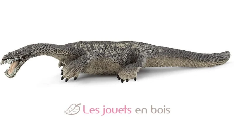 Nothosaurus ist eine semi-aquatische Eidechse. Dank seiner breiten Fächerbeine konnte dieser Dinosaurier tief ins Wasser eintauchen, aber auch an Land anmutig über die Dünen gleiten. Sein langer, dünner Hals ist perfekt zum Eintauchen in Meereskorallen auf der Suche nach kleinen Fischen. Fossilien wurden in Deutschland und Ägypten gefunden