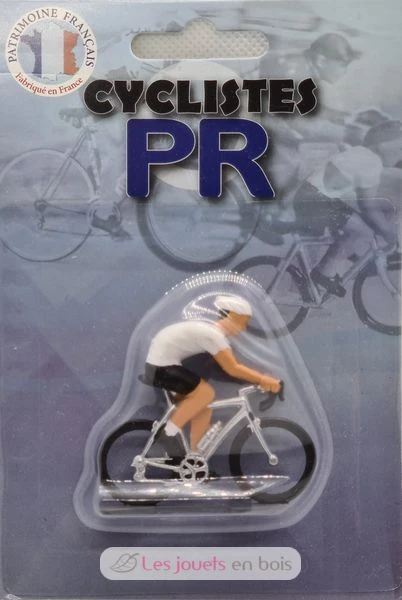 Figur eines Radfahrers, Modell M (mit Helm),Weißes Trikot der besten Youngster-Wertung der Tour de France.