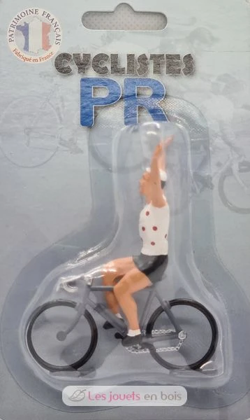 Figur eines Radfahrers, Modell D (Siegerplatz), lackiert in den gepunktetes Trikot.