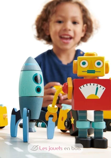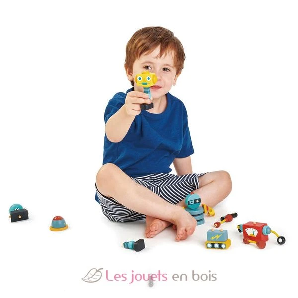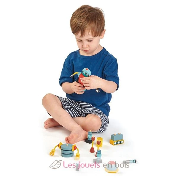 Roboterbau, ein Holzkonstruktionsspielzeug von Tender Leaf Toys.