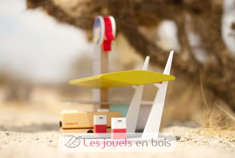 Candylab lädt Sie ein, Ihre Sammlung amerikanischer Autos mit typischen Dekorationselementen zu vervollständigen! Träumen Sie von einem amerikanischen Roadtrip mit diesem Rocket Fuel Station. Machen Sie eine Pause von Ihren Candylab-Autos, das Design dieses Station wird Sie sofort durch die Vereinigten Staaten transportieren!
