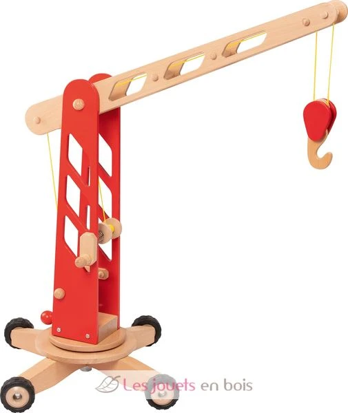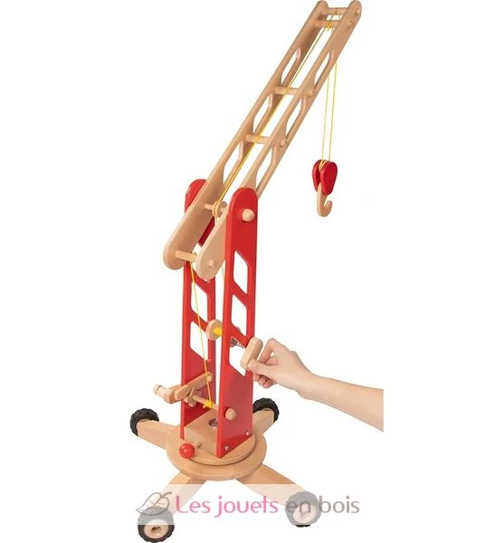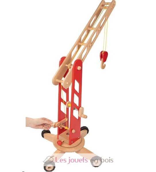 Wer hat nicht schon einmal davon geträumt, einen Kran zu fahren? Dieser 67 cm hohe Massivholzkran ist voll funktionsfähig mit Gummibereifung. Dank seiner Kurbeln kann das Kind die Neigung des Lifters variieren, aber auch den Hebehaken heben und senken.