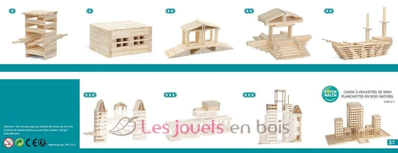 Schachtel mit 1000 Holzbrettern der Marke Sapin Malin.