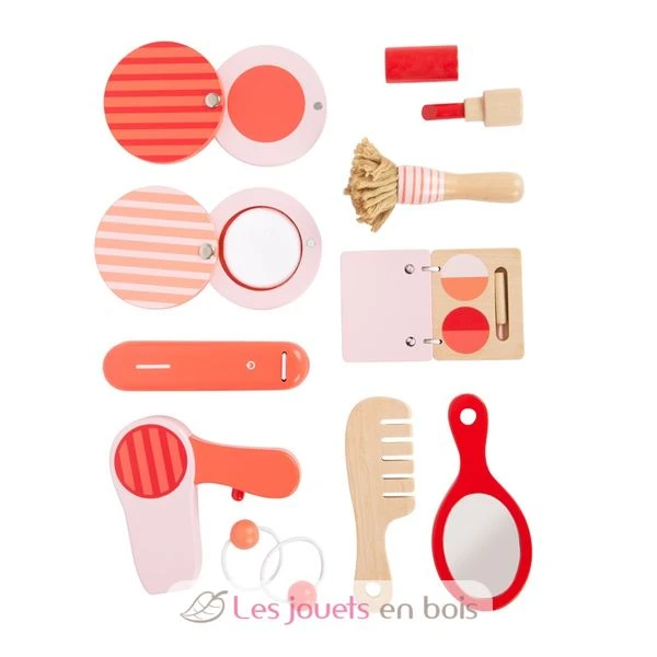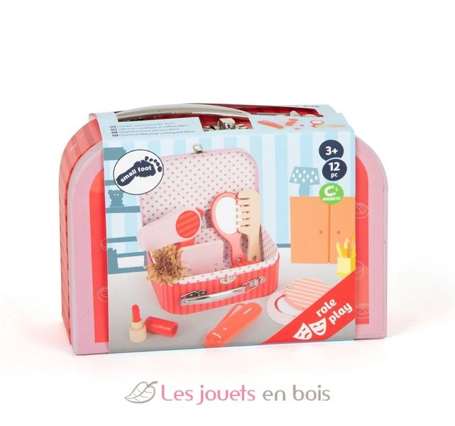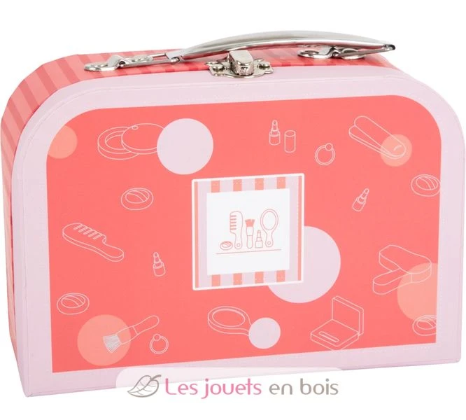 Make Up-Artists aufgepasst! Das umfangreiche Spiel-Set besteht aus allerlei Schminkutensilien wie Puder, Rouge, Puderpinsel, Lippenstift, Handspiegel und Lidschatten. Für die professionelle Haarpflege und das perfekte Styling sorgen Glätteisen, Föhn, Kamm und echte Zopfgummis zum Frisieren. Im stabilen Koffer, ideal für unterwegs.