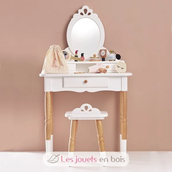 Schminktisch mit Holzhocker, ein Spielzeugimitat von Le Toy Van. Referenz TV607.