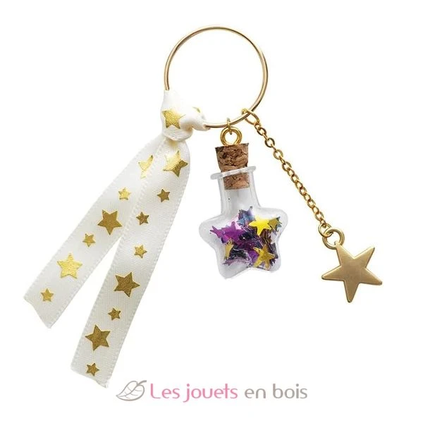 Betreten Sie eine magische Welt voller Sterne und Glitzer! Dieses Kreativ-Set umfasst viele Accessoires, mit denen ein Paar Ohrringe, eine Halskette, ein Schlüsselring und ein Armband mit schönen Fläschchen-Verzierungen gebastelt werden können. Dank der detaillierten Schritt-für-Schritt-Anleitung ist die Schmuckherstellung kinderleicht. Man muss lediglich die kleinen Fläschchen mit Sternen, Pailletten oder Sand füllen und anschließend das Schmuckstück zusammensetzen. Ihr Kind kann dann seine hübschen Kreationen tragen oder als originelles und trendiges Mitbringsel verschenken!