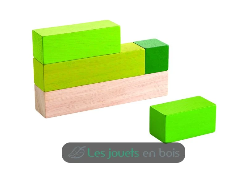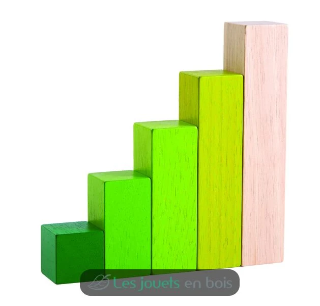 Dieses Holzspielzeug besteht aus 5 Blöcke. Es ermöglicht das Lernen von Größen durch Stapeln der Würfel auf verschiedene Arten.